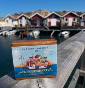 Runt förra sekelskiftet vallfärdade de bemedlade sommartid till flera av orterna längs med Bohuskusten, däribland Smögen. Allt fler hade börjat upptäcka hur hälsosamt det var med den friska luften, de salta baden och det blev särskilt populärt att bada tångbad. Smögen blev en badort, Hotell Smögens Hafvsbad byggdes och smögenborna började hyra ut rum till turisterna som kallades badgäster. Här på Smögen inte långt från Badhusparken tillverkas idag tvål av oss, Carl-Johan och Maria. Vi använder ekologiska och närproducerade ingredienser så långt det är möjligt och alla våra tvålar innehåller tång eller alger.